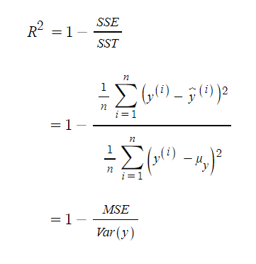 r2 score의 공식은 $r^{2} score = 1- \frac{SSE}{SST}$