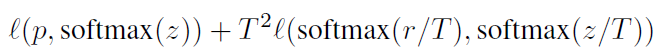 예를들어, ResNet-152를 이용해서 ResNet-50의 학습을 도울 수 있다. 학습을 하는 동안, teacher 모델과 student모델의 softmax 출력 간의 차이에 페널티를 주기 위해 증류 손실을 추가합니다. 입력이 주어지면 p가 실제 확률 분포이고, z와 r은 각각 teacher와 student의 출력이라고 가정한다. p와 z의 값을 이용한 negative softmax 손실함수는 다음과 같다.