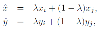 또 다른 augmentation 방법으로, 각 시간에서 임의로 두 샘플(xi, yi), (xj, yj)을 뽑는다. 그 후, 두 샘플 간의 새로운 weighted linear interpolation을 만든다.
