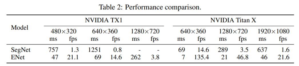Titan X GPU를 사용하고 있으며, NVIDIA TX1 보드에서 640x360를 입력으로 10fps 의 성능을 보였다.