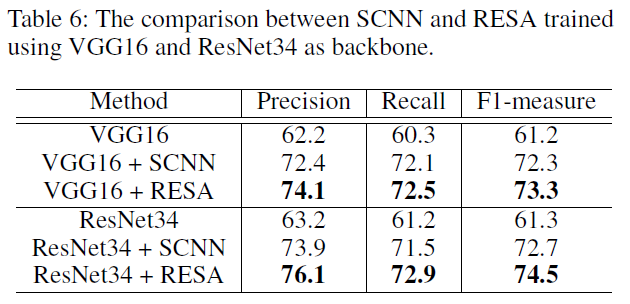 SCNN과 RESA간의 비교