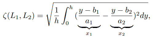 $L(L_{1}, L_{2}) \leq \frac{h}{200}$ , 같은 차선으로 고려