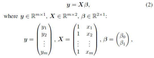 $(x_{i},y_{i})$ 는 i번째 탐지된 차선포인트의 x와 y좌표를 나타내고, $(\beta_{0},\beta_{1})$는 y-intercept와 line의 gradient를 나타내며, m은 탐지된 차선 points의 수이다.